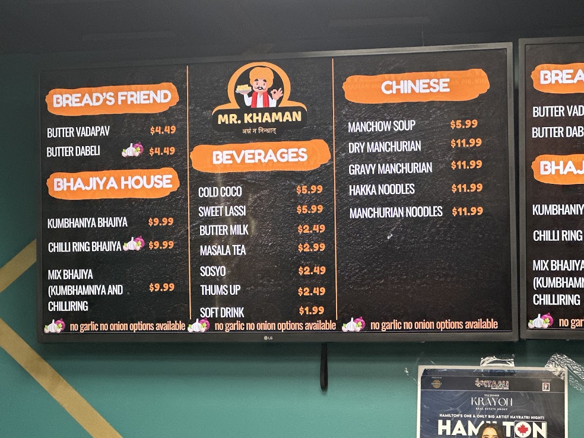 Welcome to Mr Khaman, a delightful Gujarati restaurant located in Hamilton, Ontario. This eatery serves an impressive array of authentic dishes that showcase the vibrant flavors of Gujarat. From the beloved Butter Vadapav and Butter Dabeli priced at just CA$4.49, to satisfying vegetarian Chinese options like Gravy Manchurian and Hakka Noodles at CA$11.99, there’s something to tantalize every palate.